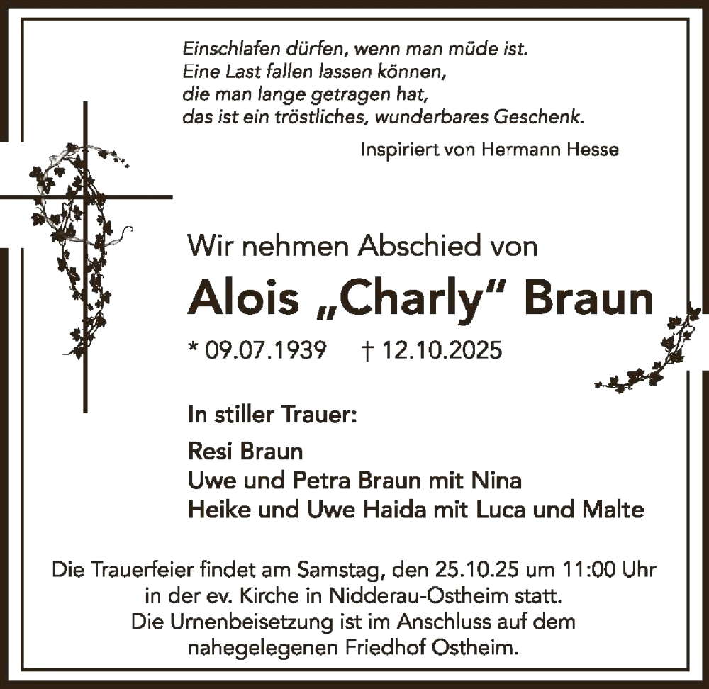 Hier finden Sie alle Traueranzeigen aus der Zeitung, die bisher für Alois Braun erschienen sind. Weitere Traueranzeigen, die in der Zeitung erscheinen, werden hier ebenfalls aufgelistet