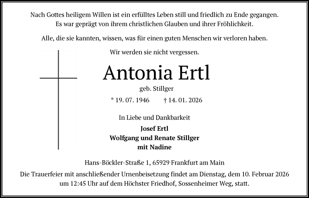 Hier finden Sie alle Traueranzeigen aus der Zeitung, die bisher für Antonia Ertl erschienen sind. Weitere Traueranzeigen, die in der Zeitung erscheinen, werden hier ebenfalls aufgelistet