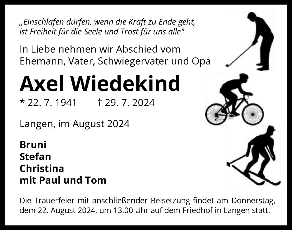 Hier finden Sie alle Traueranzeigen aus der Zeitung, die bisher für Axel Wiedekind erschienen sind. Weitere Traueranzeigen, die in der Zeitung erscheinen, werden hier ebenfalls aufgelistet