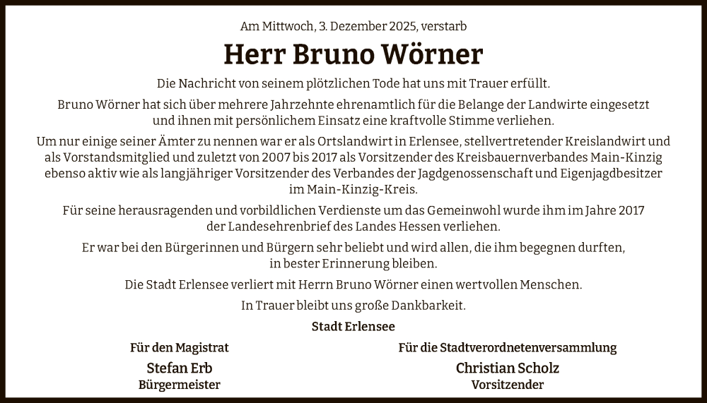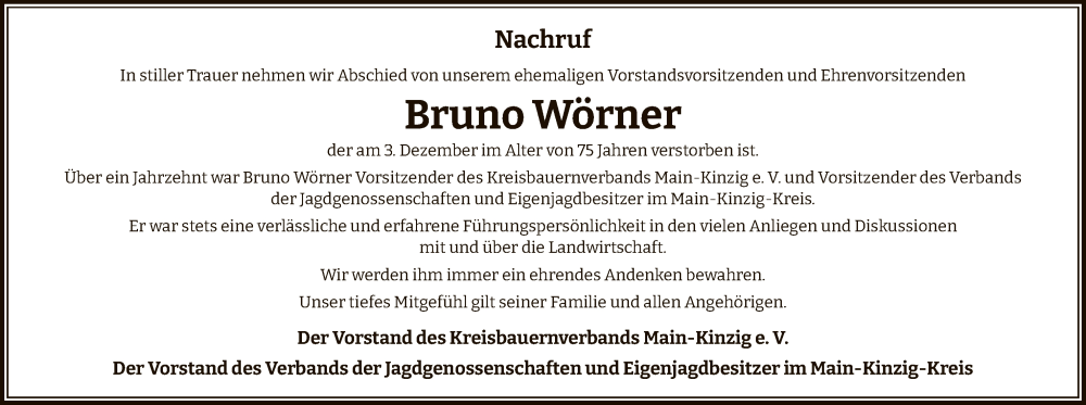 Hier finden Sie alle Traueranzeigen aus der Zeitung, die bisher für Bruno Wörner erschienen sind. Weitere Traueranzeigen, die in der Zeitung erscheinen, werden hier ebenfalls aufgelistet