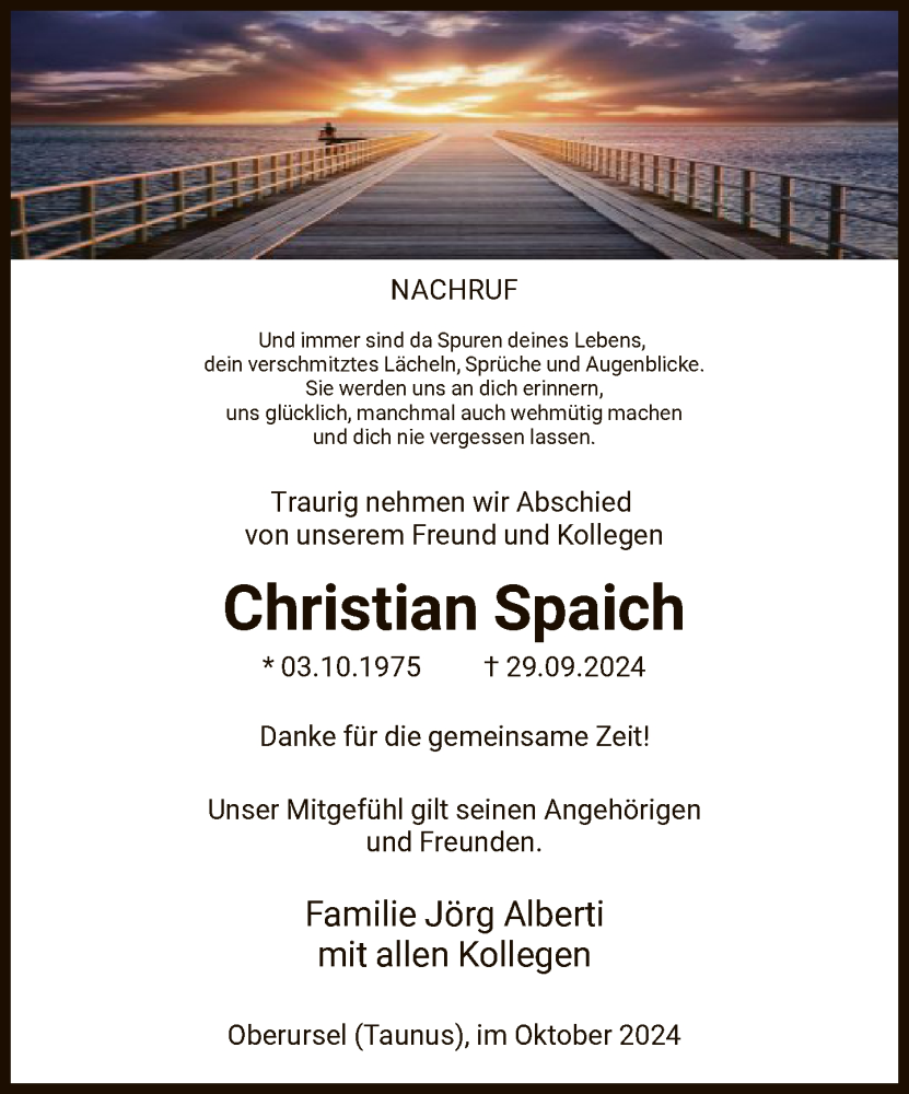 Hier finden Sie alle Traueranzeigen aus der Zeitung, die bisher für Christian Spaich erschienen sind. Weitere Traueranzeigen, die in der Zeitung erscheinen, werden hier ebenfalls aufgelistet
