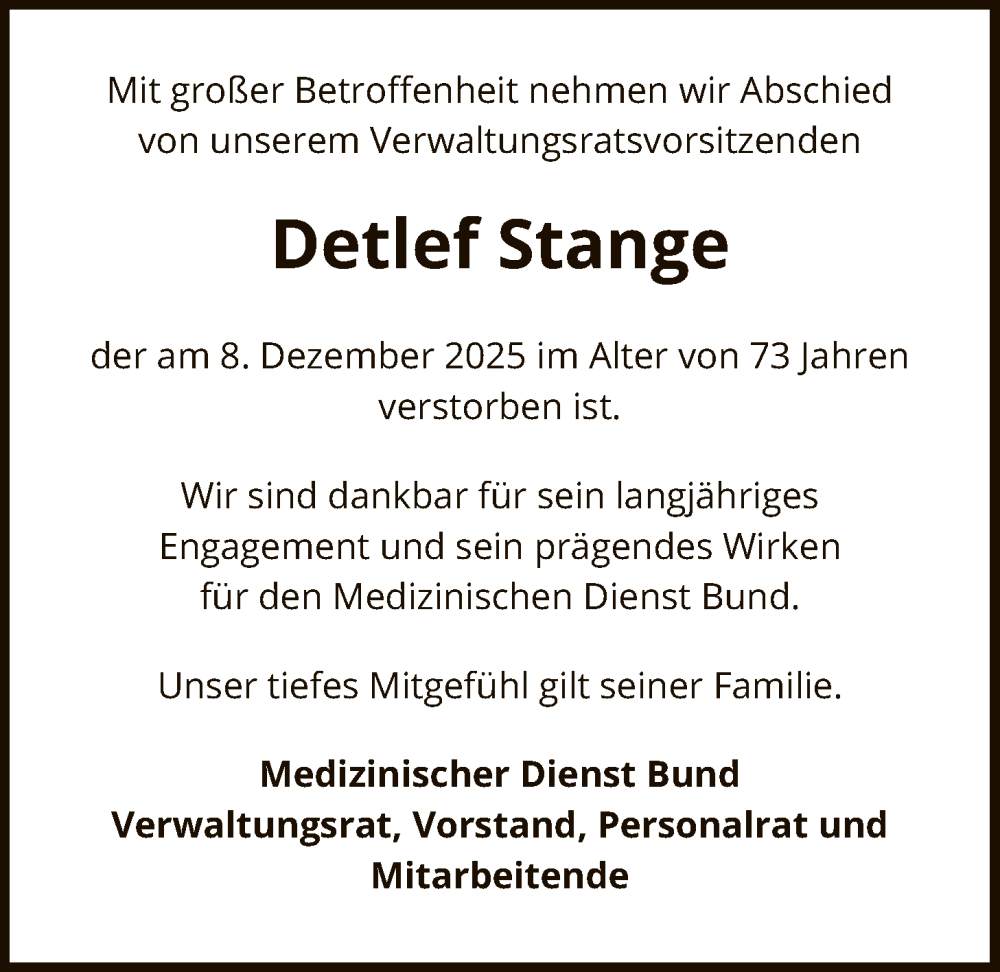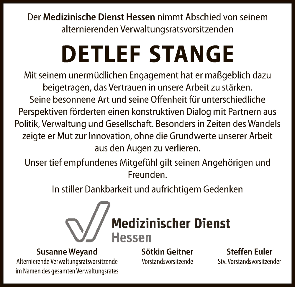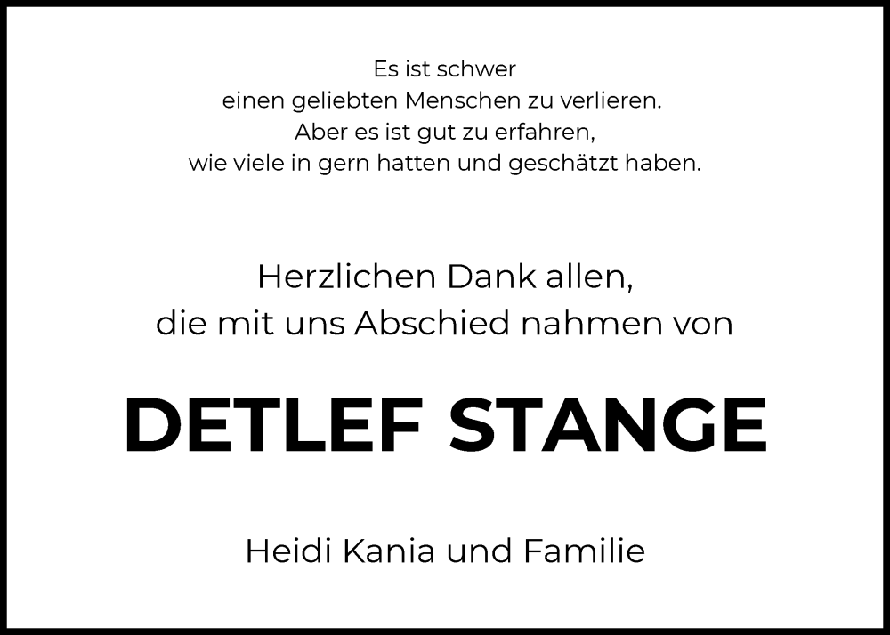 Hier finden Sie alle Traueranzeigen aus der Zeitung, die bisher für Detlef Stange erschienen sind. Weitere Traueranzeigen, die in der Zeitung erscheinen, werden hier ebenfalls aufgelistet