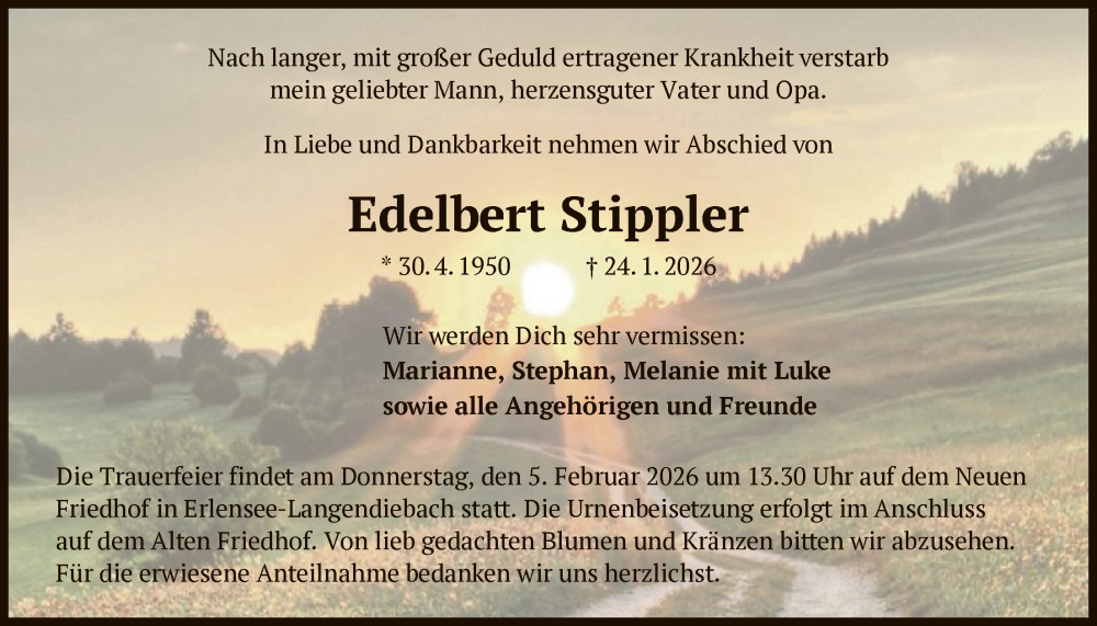 Hier finden Sie alle Traueranzeigen aus der Zeitung, die bisher für Edelbert Stippler erschienen sind. Weitere Traueranzeigen, die in der Zeitung erscheinen, werden hier ebenfalls aufgelistet