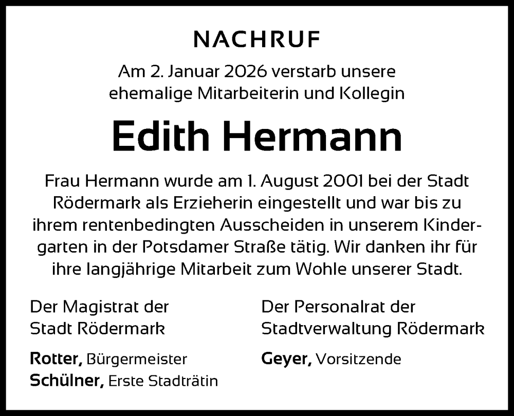 Hier finden Sie alle Traueranzeigen aus der Zeitung, die bisher für Edith Hermann erschienen sind. Weitere Traueranzeigen, die in der Zeitung erscheinen, werden hier ebenfalls aufgelistet