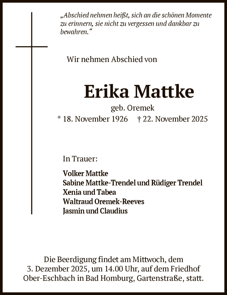 Hier finden Sie alle Traueranzeigen aus der Zeitung, die bisher für Erika Mattke erschienen sind. Weitere Traueranzeigen, die in der Zeitung erscheinen, werden hier ebenfalls aufgelistet