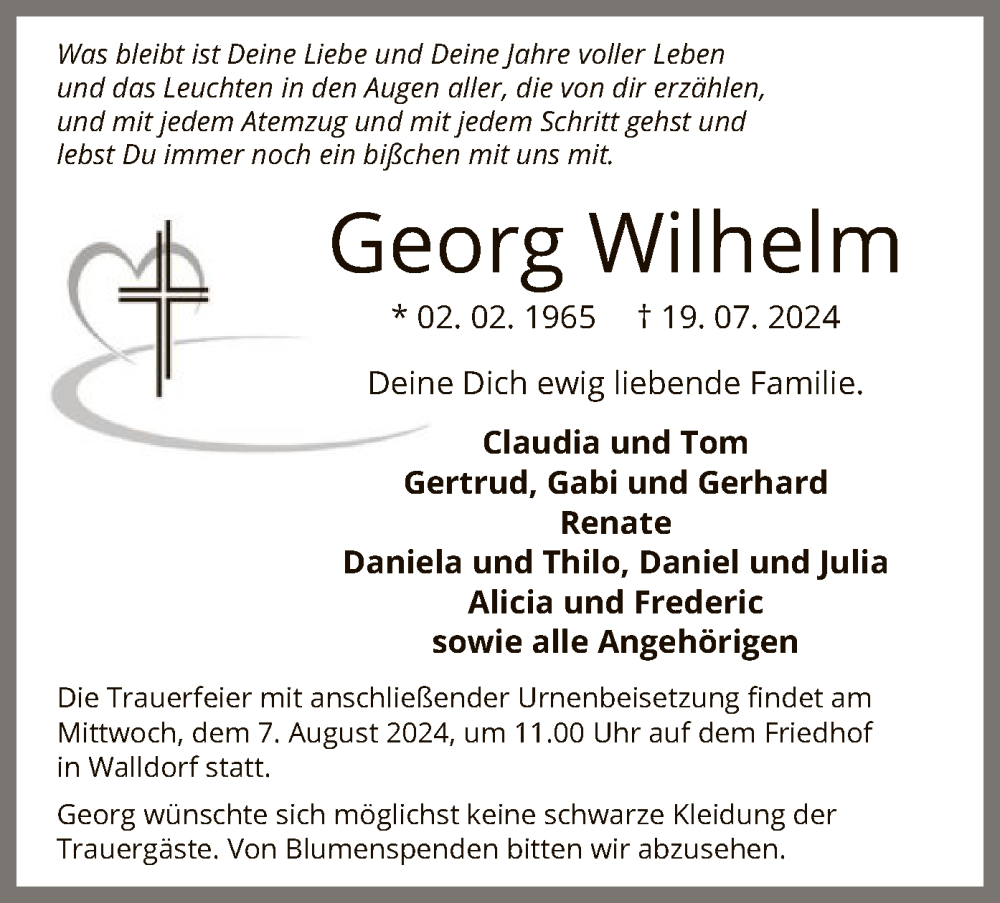 Hier finden Sie alle Traueranzeigen aus der Zeitung, die bisher für Georg Wilhelm erschienen sind. Weitere Traueranzeigen, die in der Zeitung erscheinen, werden hier ebenfalls aufgelistet