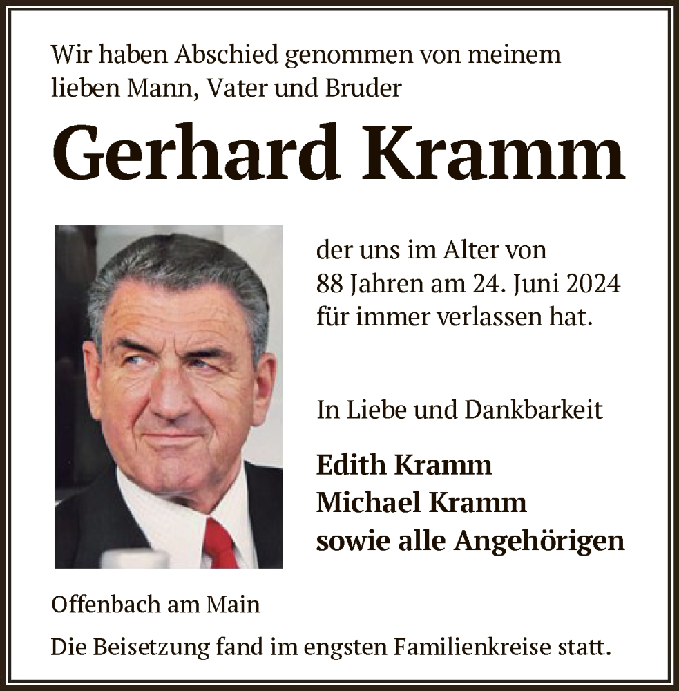 Hier finden Sie alle Traueranzeigen aus der Zeitung, die bisher für Gerhard Kramm erschienen sind. Weitere Traueranzeigen, die in der Zeitung erscheinen, werden hier ebenfalls aufgelistet