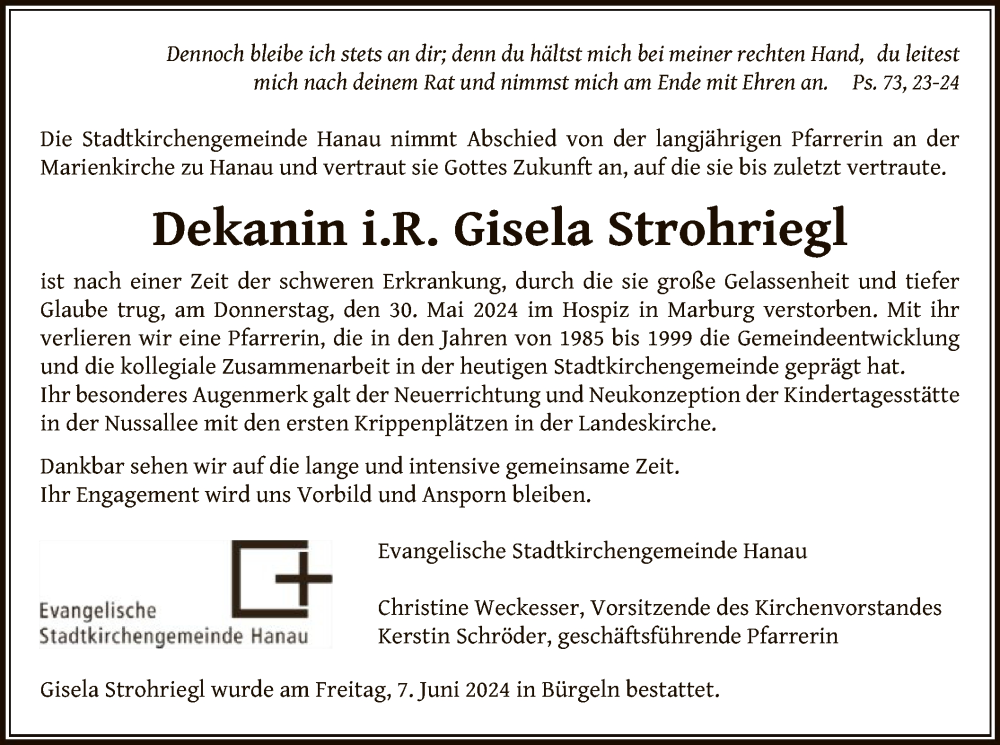 Hier finden Sie alle Traueranzeigen aus der Zeitung, die bisher für Gisela Strohriegl erschienen sind. Weitere Traueranzeigen, die in der Zeitung erscheinen, werden hier ebenfalls aufgelistet