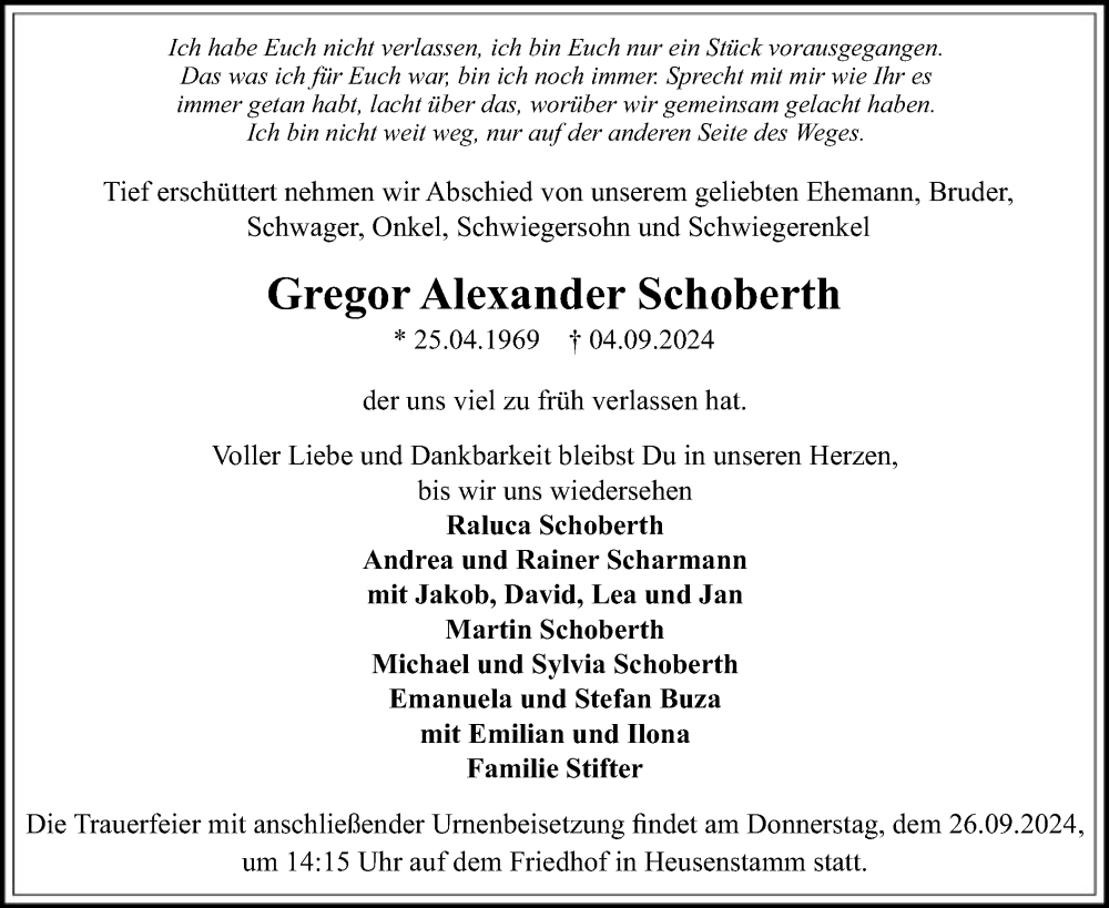 Hier finden Sie alle Traueranzeigen aus der Zeitung, die bisher für Gregor Alexander Schoberth erschienen sind. Weitere Traueranzeigen, die in der Zeitung erscheinen, werden hier ebenfalls aufgelistet