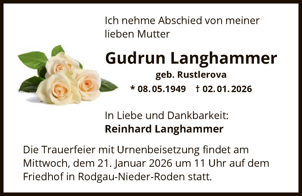 Hier finden Sie alle Traueranzeigen aus der Zeitung, die bisher für Gudrun Langhammer erschienen sind. Weitere Traueranzeigen, die in der Zeitung erscheinen, werden hier ebenfalls aufgelistet