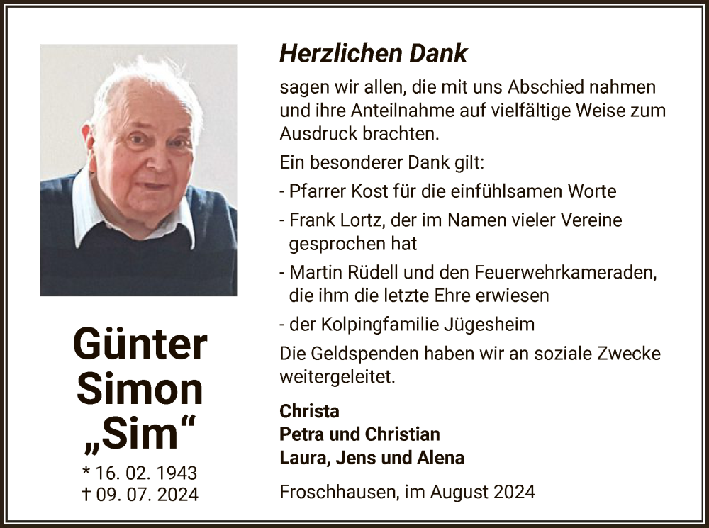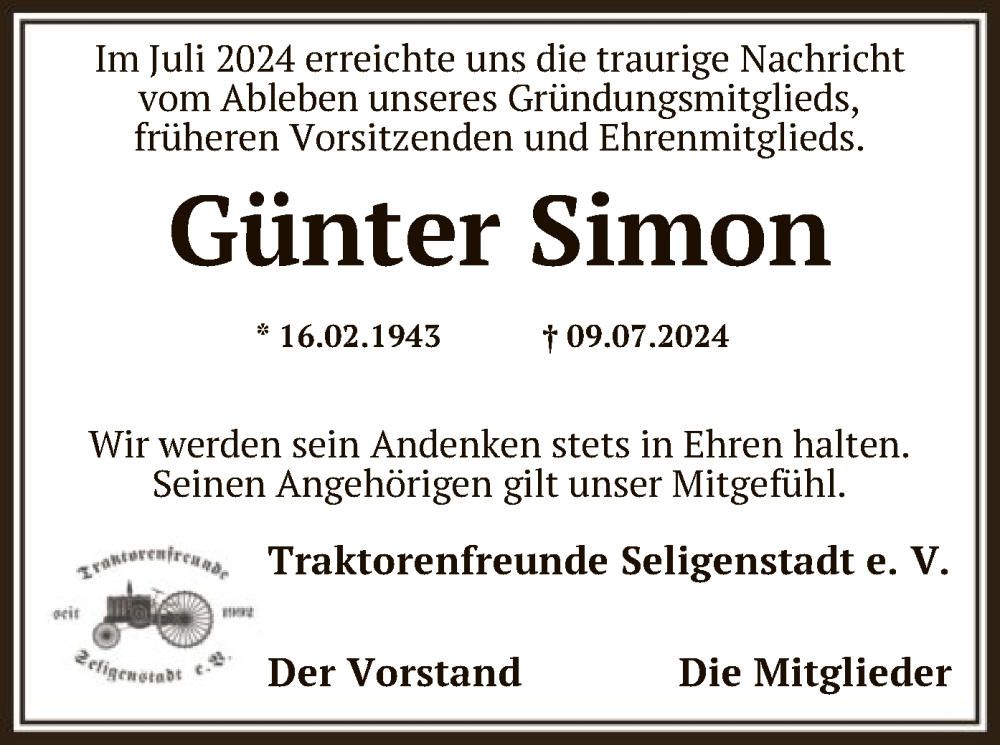 Hier finden Sie alle Traueranzeigen aus der Zeitung, die bisher für Günter Simon erschienen sind. Weitere Traueranzeigen, die in der Zeitung erscheinen, werden hier ebenfalls aufgelistet