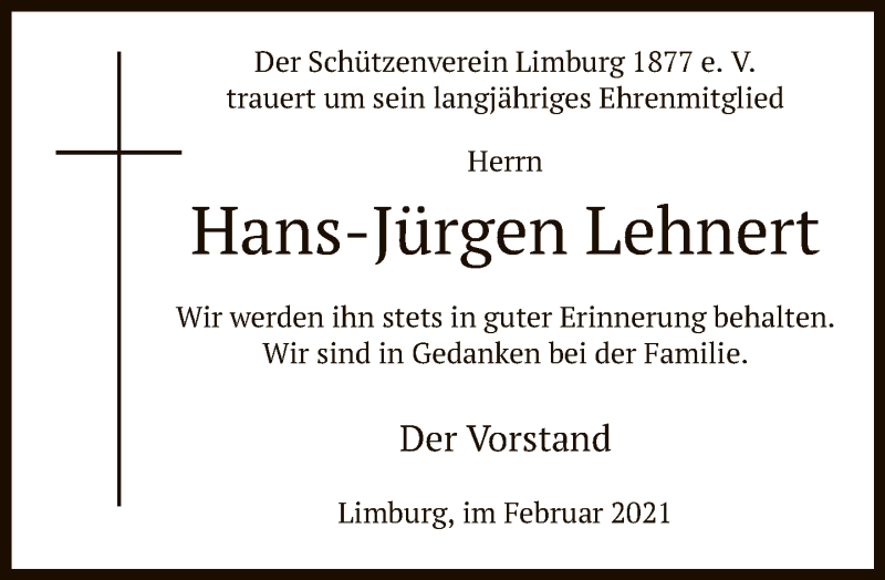 Hier finden Sie alle Traueranzeigen aus der Zeitung, die bisher für Hans-Jürgen Lehnert erschienen sind. Weitere Traueranzeigen, die in der Zeitung erscheinen, werden hier ebenfalls aufgelistet