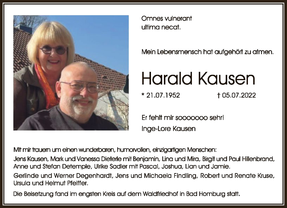 Hier finden Sie alle Traueranzeigen aus der Zeitung, die bisher für Harald Kausen erschienen sind. Weitere Traueranzeigen, die in der Zeitung erscheinen, werden hier ebenfalls aufgelistet