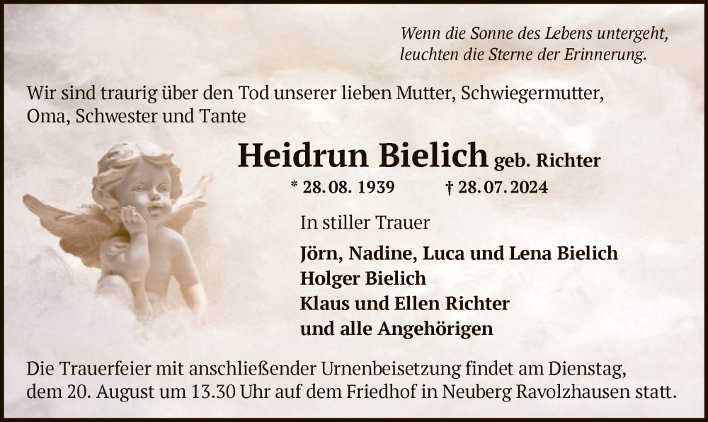 Hier finden Sie alle Traueranzeigen aus der Zeitung, die bisher für Heidrun Bielich erschienen sind. Weitere Traueranzeigen, die in der Zeitung erscheinen, werden hier ebenfalls aufgelistet