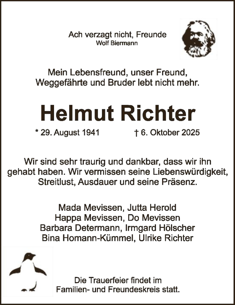 Hier finden Sie alle Traueranzeigen aus der Zeitung, die bisher für Helmut Richter erschienen sind. Weitere Traueranzeigen, die in der Zeitung erscheinen, werden hier ebenfalls aufgelistet