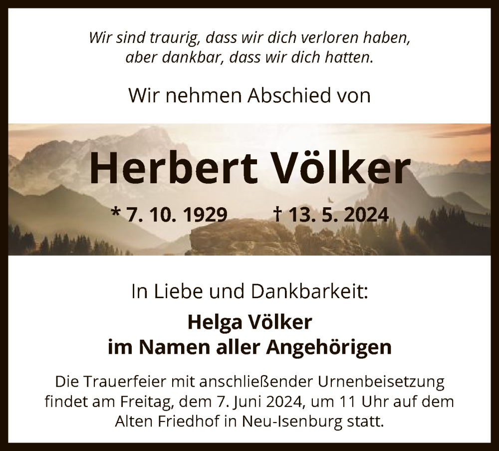 Hier finden Sie alle Traueranzeigen aus der Zeitung, die bisher für Herbert Völker erschienen sind. Weitere Traueranzeigen, die in der Zeitung erscheinen, werden hier ebenfalls aufgelistet