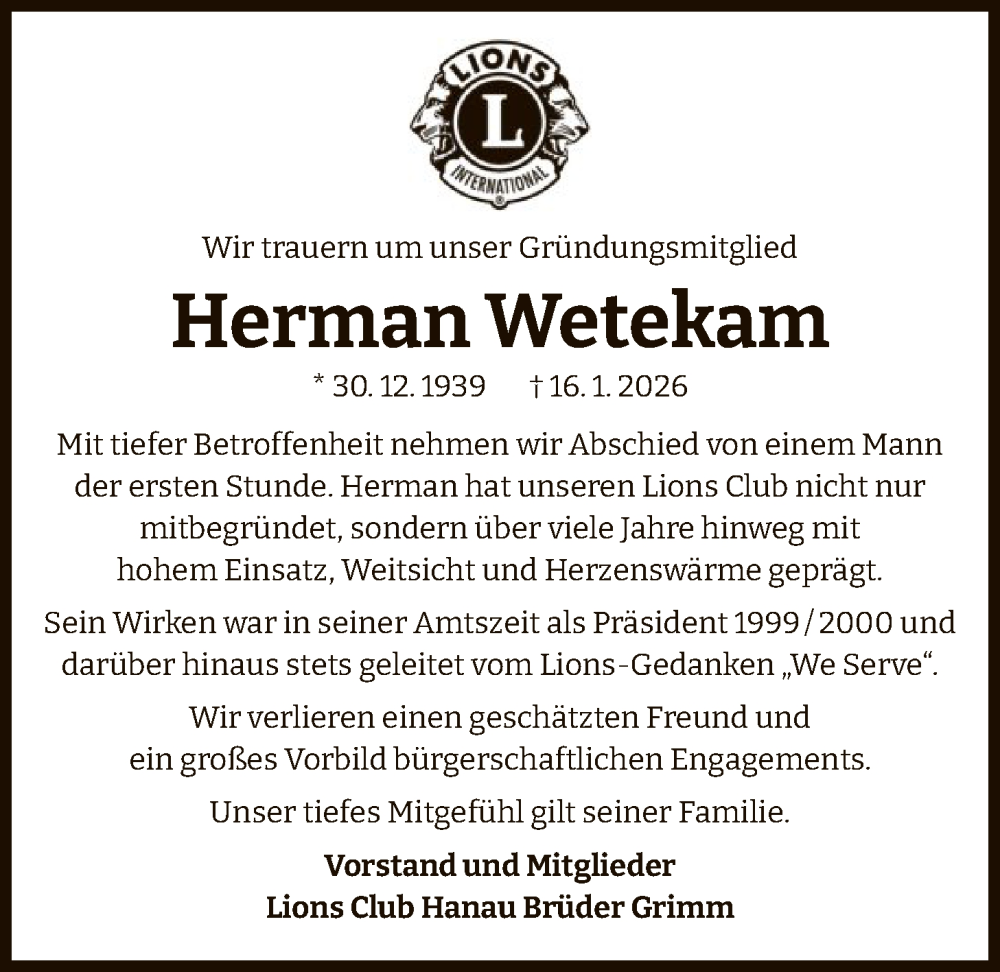 Hier finden Sie alle Traueranzeigen aus der Zeitung, die bisher für Herman Wetekam erschienen sind. Weitere Traueranzeigen, die in der Zeitung erscheinen, werden hier ebenfalls aufgelistet