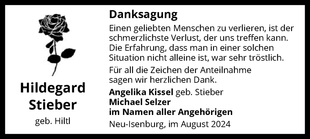 Hier finden Sie alle Traueranzeigen aus der Zeitung, die bisher für Hildegard Stieber erschienen sind. Weitere Traueranzeigen, die in der Zeitung erscheinen, werden hier ebenfalls aufgelistet