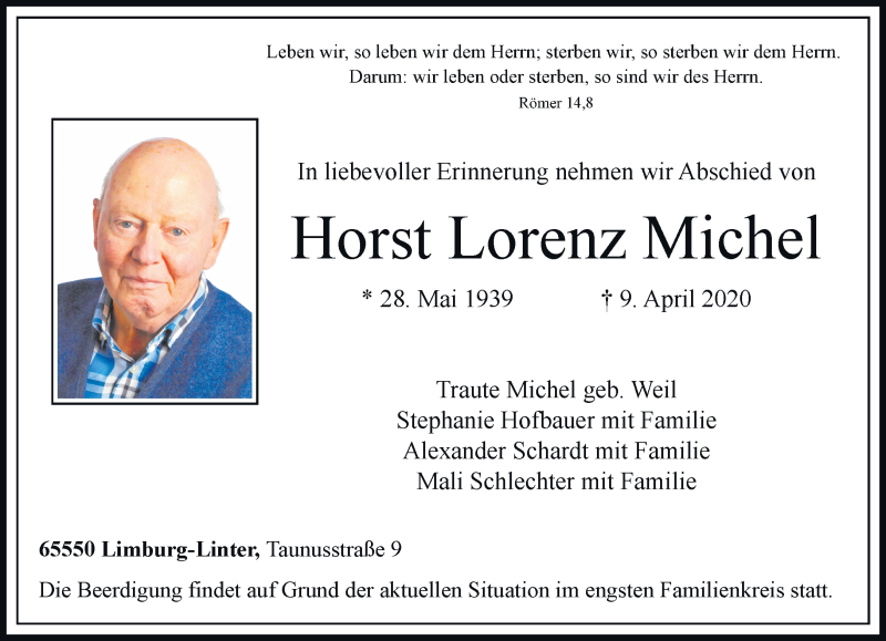 Hier finden Sie alle Traueranzeigen aus der Zeitung, die bisher für Horst Lorenz Michel erschienen sind. Weitere Traueranzeigen, die in der Zeitung erscheinen, werden hier ebenfalls aufgelistet