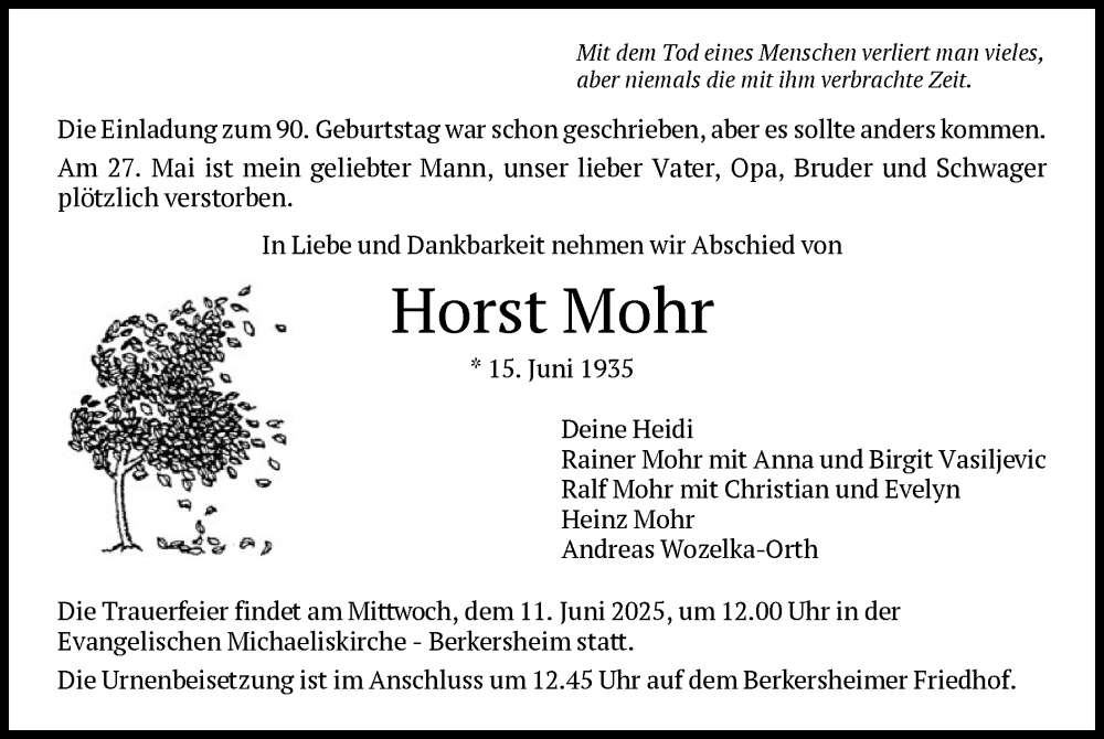 Hier finden Sie alle Traueranzeigen aus der Zeitung, die bisher für Horst Mohr erschienen sind. Weitere Traueranzeigen, die in der Zeitung erscheinen, werden hier ebenfalls aufgelistet