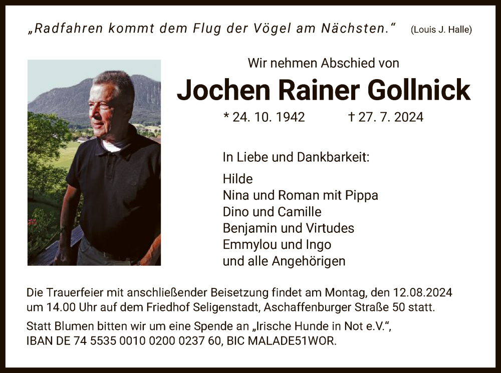 Hier finden Sie alle Traueranzeigen aus der Zeitung, die bisher für Jochen Rainer Gollnick erschienen sind. Weitere Traueranzeigen, die in der Zeitung erscheinen, werden hier ebenfalls aufgelistet