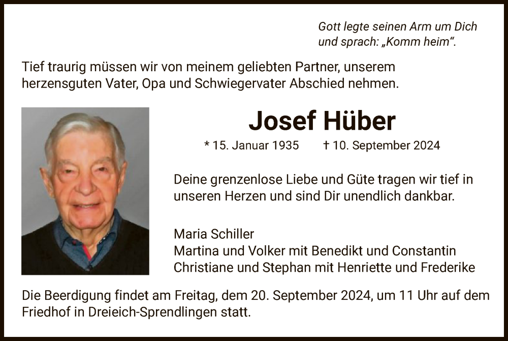 Hier finden Sie alle Traueranzeigen aus der Zeitung, die bisher für Josef Hüber erschienen sind. Weitere Traueranzeigen, die in der Zeitung erscheinen, werden hier ebenfalls aufgelistet