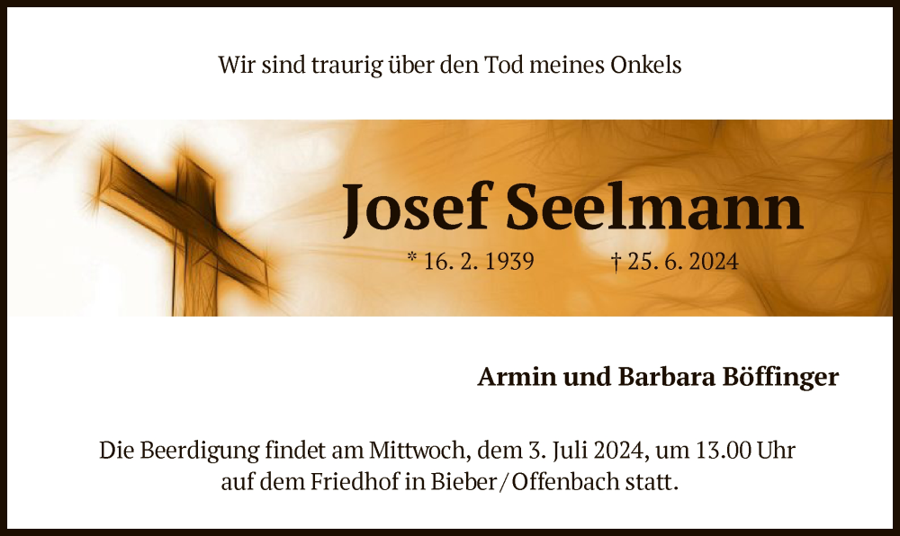 Hier finden Sie alle Traueranzeigen aus der Zeitung, die bisher für Josef Seelmann erschienen sind. Weitere Traueranzeigen, die in der Zeitung erscheinen, werden hier ebenfalls aufgelistet