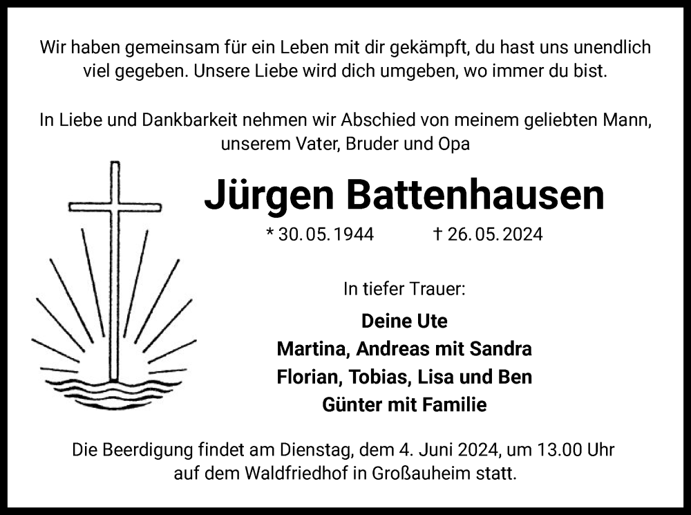 Hier finden Sie alle Traueranzeigen aus der Zeitung, die bisher für Jürgen Battenhausen erschienen sind. Weitere Traueranzeigen, die in der Zeitung erscheinen, werden hier ebenfalls aufgelistet