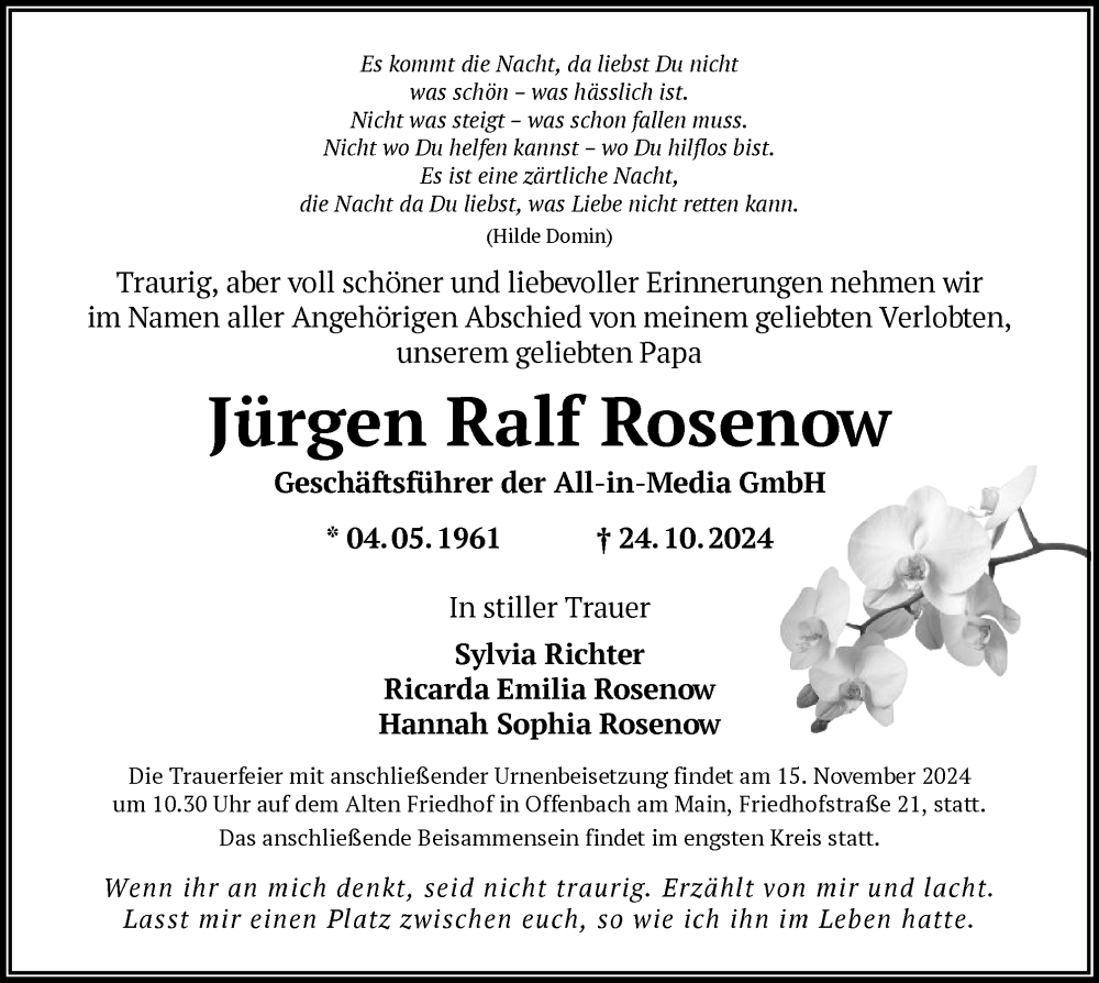 Hier finden Sie alle Traueranzeigen aus der Zeitung, die bisher für Jürgen Ralf Rosenow erschienen sind. Weitere Traueranzeigen, die in der Zeitung erscheinen, werden hier ebenfalls aufgelistet