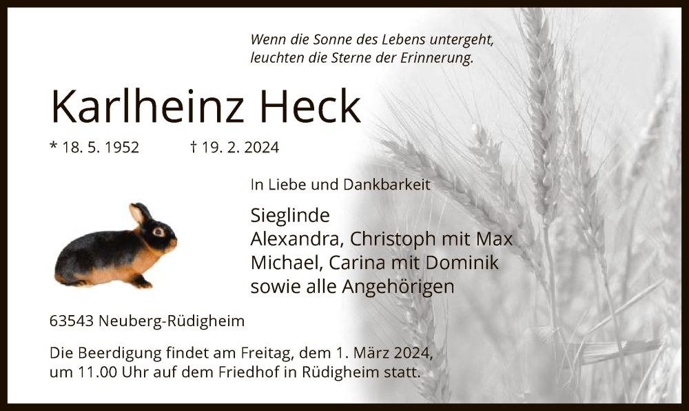 Hier finden Sie alle Traueranzeigen aus der Zeitung, die bisher für Karlheinz Heck erschienen sind. Weitere Traueranzeigen, die in der Zeitung erscheinen, werden hier ebenfalls aufgelistet