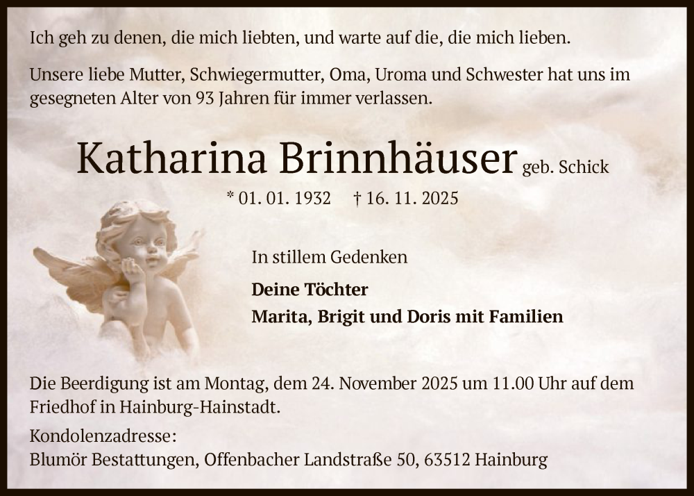 Hier finden Sie alle Traueranzeigen aus der Zeitung, die bisher für Katharina Brinnhäuser erschienen sind. Weitere Traueranzeigen, die in der Zeitung erscheinen, werden hier ebenfalls aufgelistet