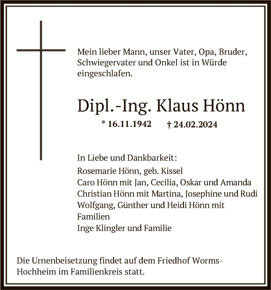 Hier finden Sie alle Traueranzeigen aus der Zeitung, die bisher für Klaus Hönn erschienen sind. Weitere Traueranzeigen, die in der Zeitung erscheinen, werden hier ebenfalls aufgelistet
