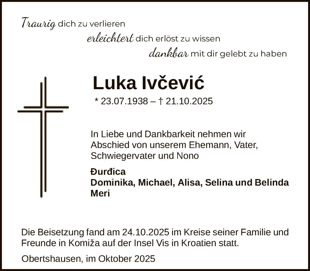Hier finden Sie alle Traueranzeigen aus der Zeitung, die bisher für Luka Ivčevic erschienen sind. Weitere Traueranzeigen, die in der Zeitung erscheinen, werden hier ebenfalls aufgelistet