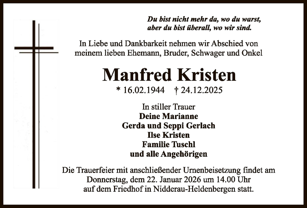 Hier finden Sie alle Traueranzeigen aus der Zeitung, die bisher für Manfred Kristen erschienen sind. Weitere Traueranzeigen, die in der Zeitung erscheinen, werden hier ebenfalls aufgelistet
