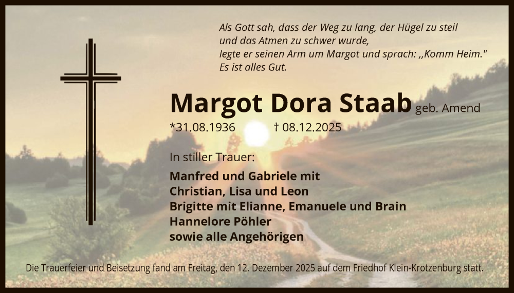 Hier finden Sie alle Traueranzeigen aus der Zeitung, die bisher für Margot Dora Staab erschienen sind. Weitere Traueranzeigen, die in der Zeitung erscheinen, werden hier ebenfalls aufgelistet