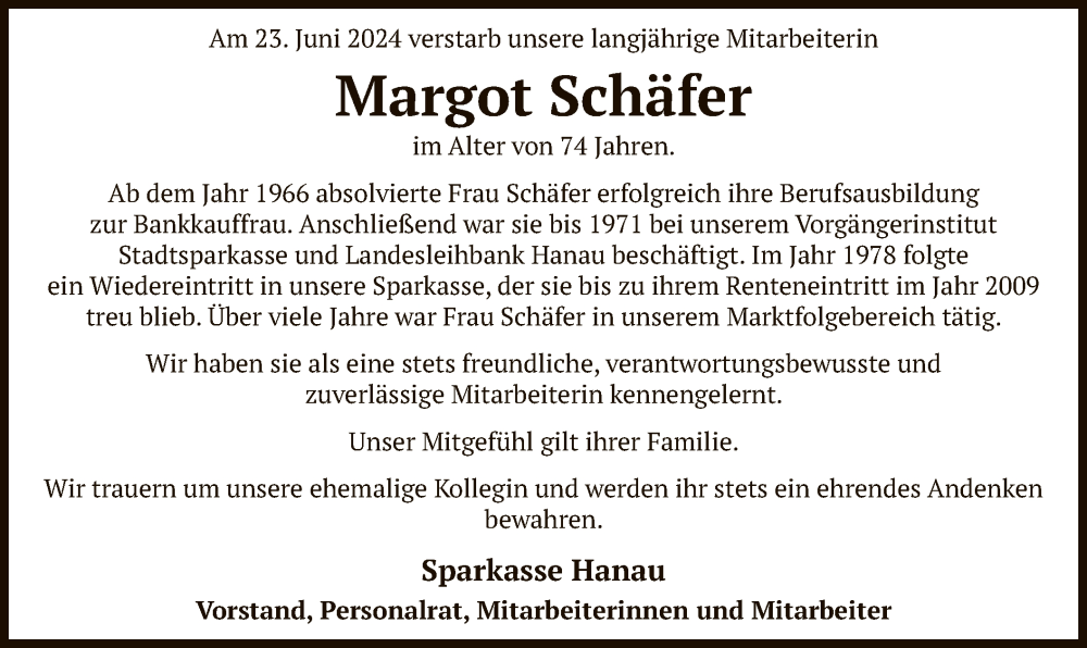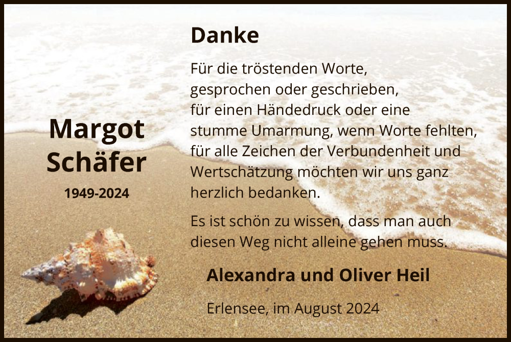 Hier finden Sie alle Traueranzeigen aus der Zeitung, die bisher für Margot Schäfer erschienen sind. Weitere Traueranzeigen, die in der Zeitung erscheinen, werden hier ebenfalls aufgelistet