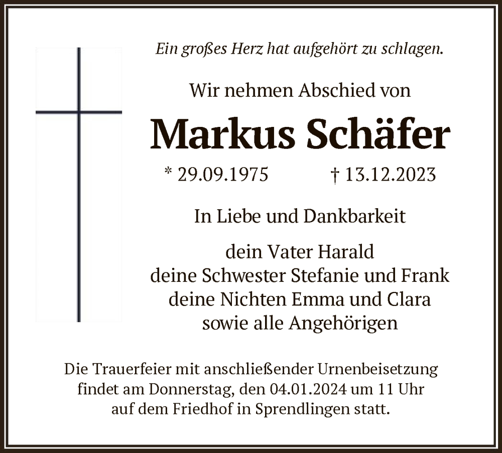 Hier finden Sie alle Traueranzeigen aus der Zeitung, die bisher für Markus Schäfer erschienen sind. Weitere Traueranzeigen, die in der Zeitung erscheinen, werden hier ebenfalls aufgelistet
