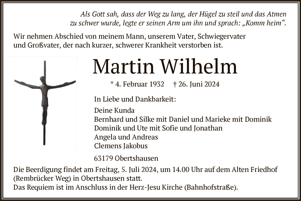 Hier finden Sie alle Traueranzeigen aus der Zeitung, die bisher für Martin Wilhelm erschienen sind. Weitere Traueranzeigen, die in der Zeitung erscheinen, werden hier ebenfalls aufgelistet