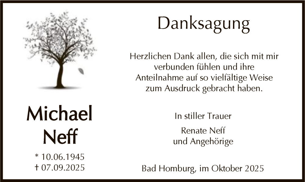 Hier finden Sie alle Traueranzeigen aus der Zeitung, die bisher für Michael Neff erschienen sind. Weitere Traueranzeigen, die in der Zeitung erscheinen, werden hier ebenfalls aufgelistet
