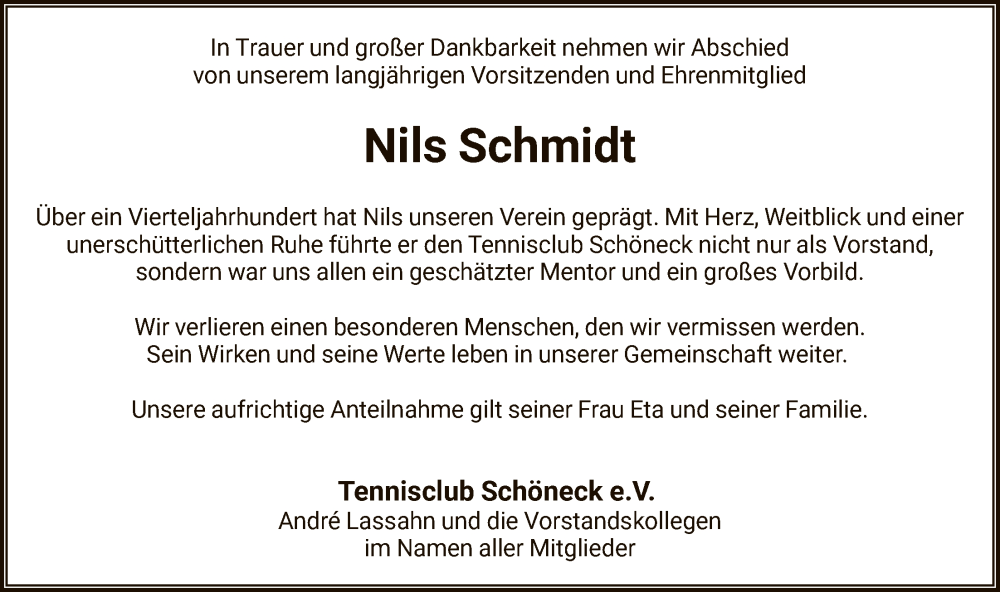 Hier finden Sie alle Traueranzeigen aus der Zeitung, die bisher für Nils Schmidt erschienen sind. Weitere Traueranzeigen, die in der Zeitung erscheinen, werden hier ebenfalls aufgelistet