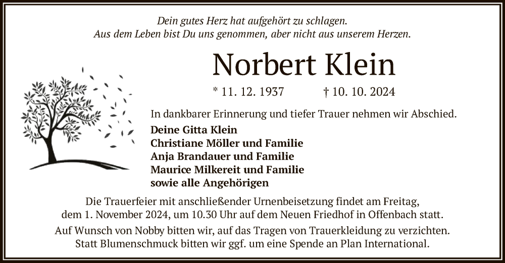 Hier finden Sie alle Traueranzeigen aus der Zeitung, die bisher für Norbert Klein erschienen sind. Weitere Traueranzeigen, die in der Zeitung erscheinen, werden hier ebenfalls aufgelistet