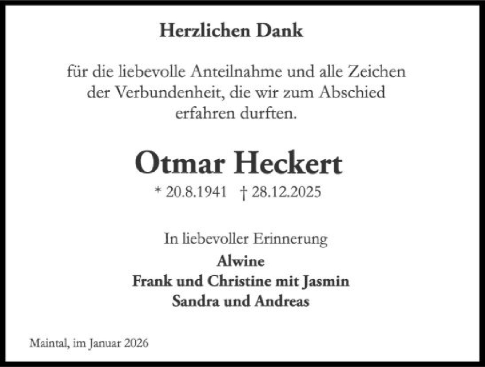 Hier finden Sie alle Traueranzeigen aus der Zeitung, die bisher für Otmar Heckert erschienen sind. Weitere Traueranzeigen, die in der Zeitung erscheinen, werden hier ebenfalls aufgelistet