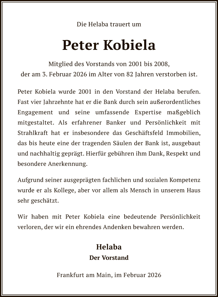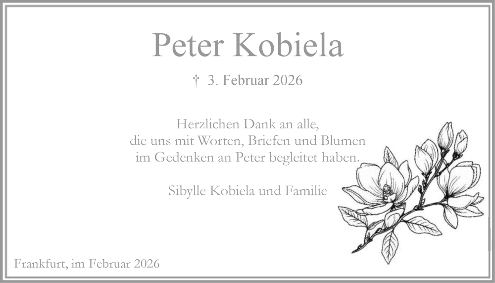 Hier finden Sie alle Traueranzeigen aus der Zeitung, die bisher für Peter Kobiela erschienen sind. Weitere Traueranzeigen, die in der Zeitung erscheinen, werden hier ebenfalls aufgelistet