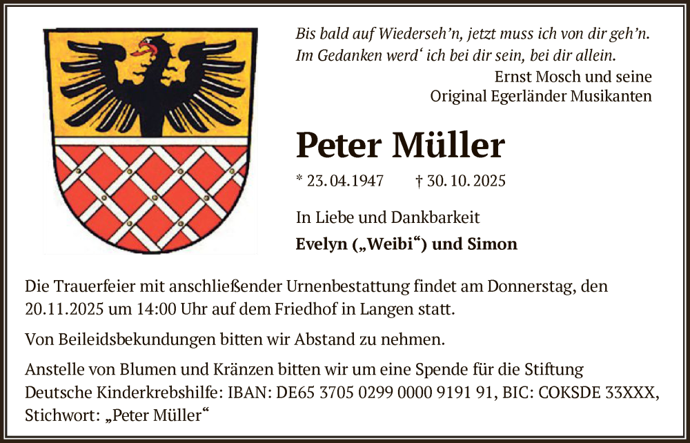 Hier finden Sie alle Traueranzeigen aus der Zeitung, die bisher für Peter Müller erschienen sind. Weitere Traueranzeigen, die in der Zeitung erscheinen, werden hier ebenfalls aufgelistet