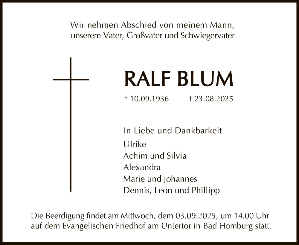 Hier finden Sie alle Traueranzeigen aus der Zeitung, die bisher für Ralf Blum erschienen sind. Weitere Traueranzeigen, die in der Zeitung erscheinen, werden hier ebenfalls aufgelistet
