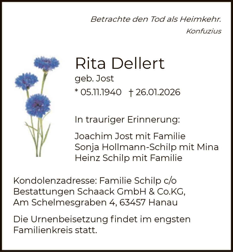 Hier finden Sie alle Traueranzeigen aus der Zeitung, die bisher für Rita Dellert erschienen sind. Weitere Traueranzeigen, die in der Zeitung erscheinen, werden hier ebenfalls aufgelistet