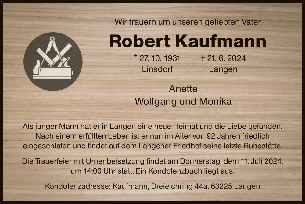 Hier finden Sie alle Traueranzeigen aus der Zeitung, die bisher für Robert Kaufmann erschienen sind. Weitere Traueranzeigen, die in der Zeitung erscheinen, werden hier ebenfalls aufgelistet