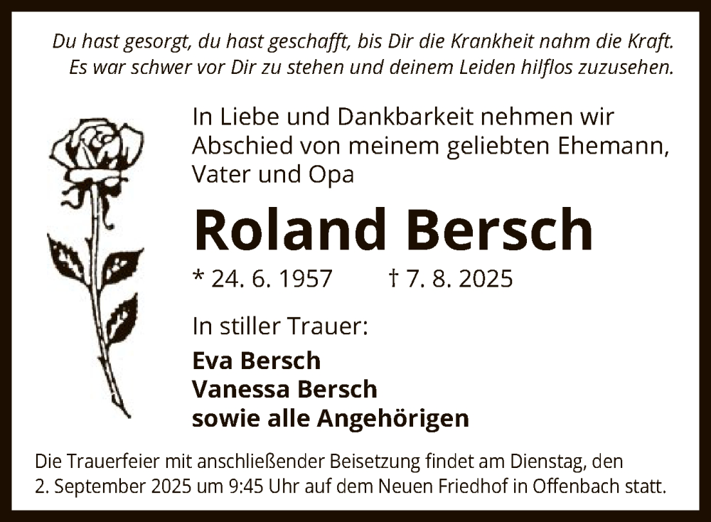 Hier finden Sie alle Traueranzeigen aus der Zeitung, die bisher für Roland Bersch erschienen sind. Weitere Traueranzeigen, die in der Zeitung erscheinen, werden hier ebenfalls aufgelistet