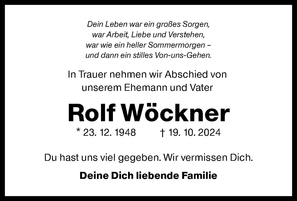 Hier finden Sie alle Traueranzeigen aus der Zeitung, die bisher für Rolf Wöckner erschienen sind. Weitere Traueranzeigen, die in der Zeitung erscheinen, werden hier ebenfalls aufgelistet