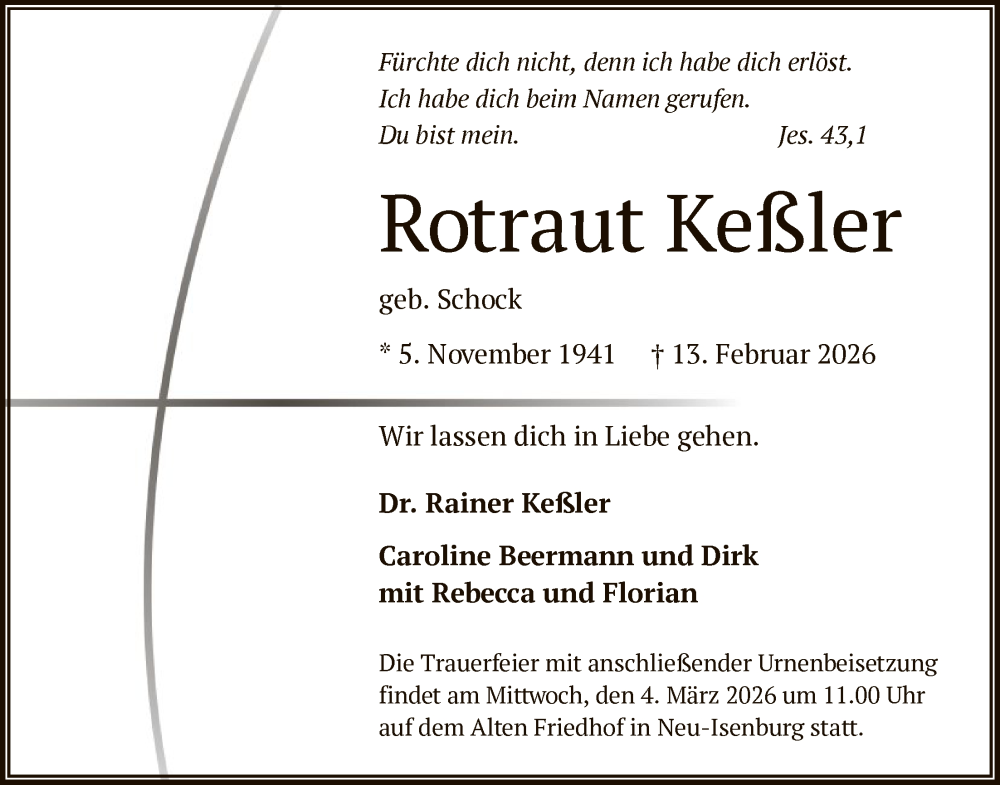 Hier finden Sie alle Traueranzeigen aus der Zeitung, die bisher für Rotraut Kessler erschienen sind. Weitere Traueranzeigen, die in der Zeitung erscheinen, werden hier ebenfalls aufgelistet